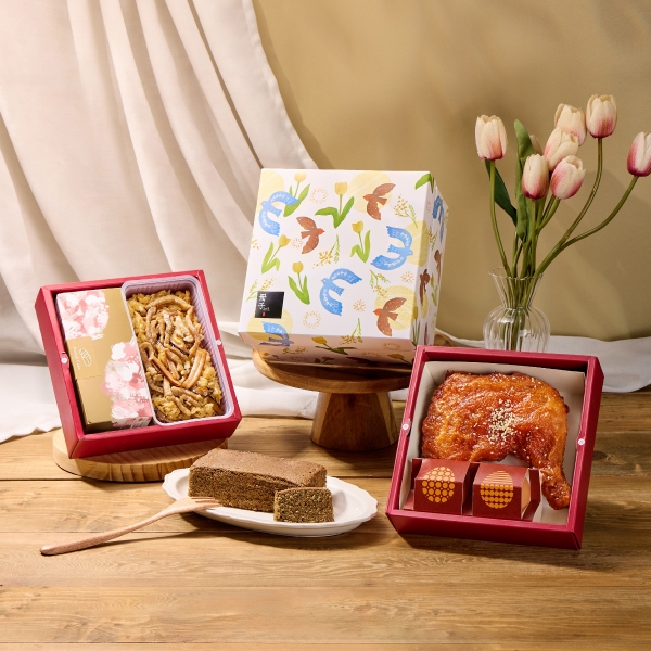 幸福鳥語-8兩油飯蛋糕餅乾雙層禮盒-璀璨系列