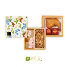 幸福鳥語-雙層-8兩油飯蜂蜜蛋糕雞腿紅蛋禮盒-璀璨系列