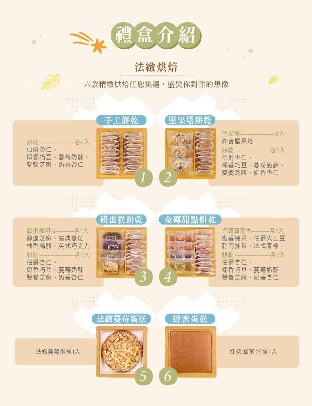 ⑷金磚甜點餅乾 ⑸法緻蔓莓蛋糕 ⑹蜂蜜蛋糕