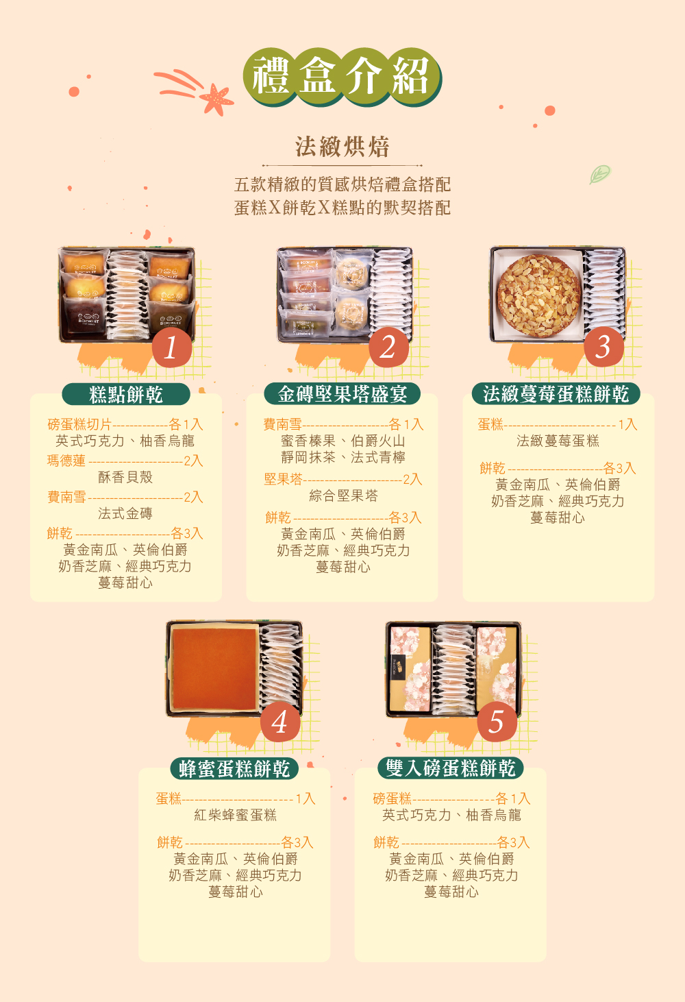 5款任選一款糕點搭配15片手工餅乾
