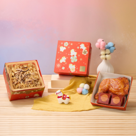 金喜寶盒-小雙層-10兩油飯雞腿紅蛋禮盒-確幸系列【馬年限定款】